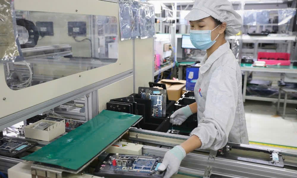 | Dây chuyền sản xuất tại Tập đoàn Khoa học Kĩ thuật Hồng Hải. Ảnh: Tường Vy |