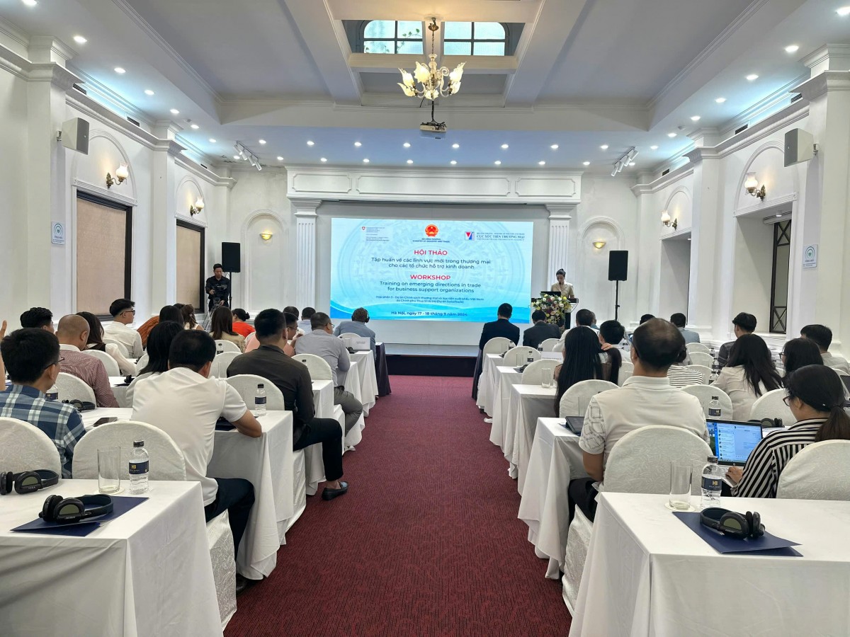 | Hội thảo tập huấn về các lĩnh vực mới trong thương mại cho các tổ chức hỗ trợ kinh doanh - Hợp phần 3 Dự án Chính sách thương mại và Xúc tiến xuất khẩu Việt Nam do Chính phủ Thụy Sĩ tài trợ, sáng 17/9. Ảnh: Đỗ Nga |