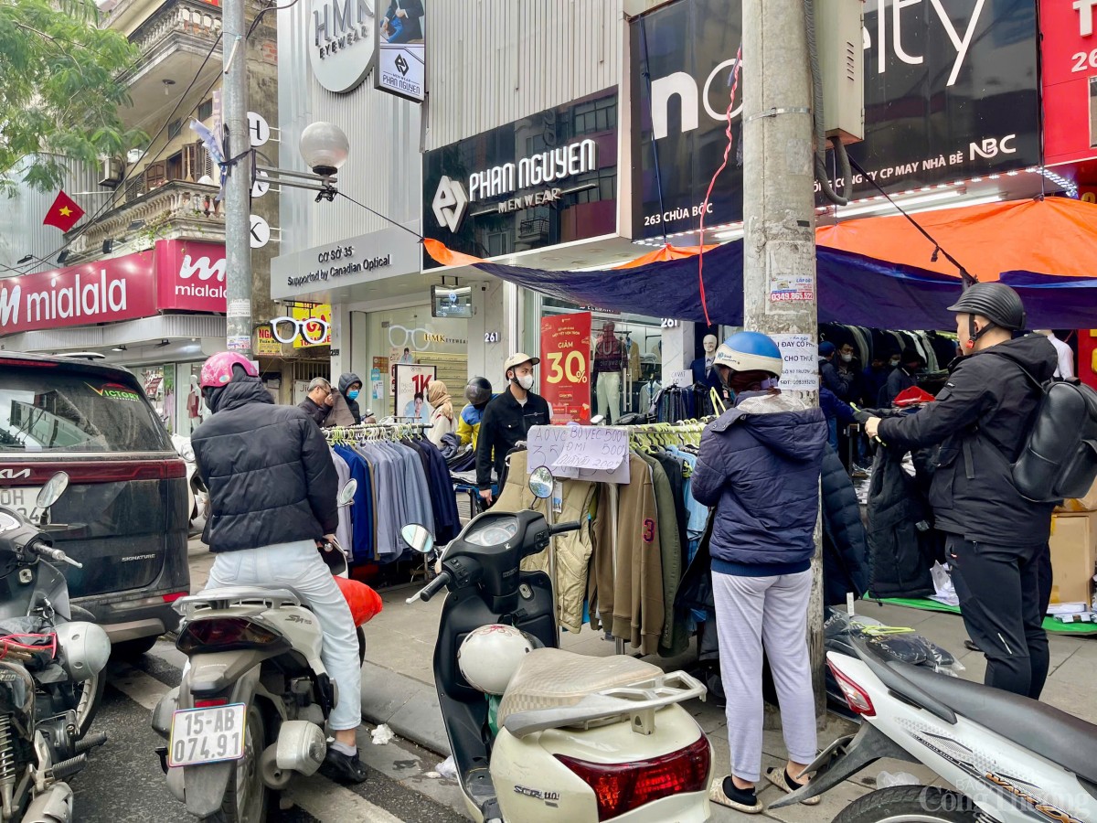 | Trên vỉa hè "kinh đô thời trang" phố Chùa Bộc, khách hàng vòng trong vòng ngoài luân phiên tới mua sắm. |