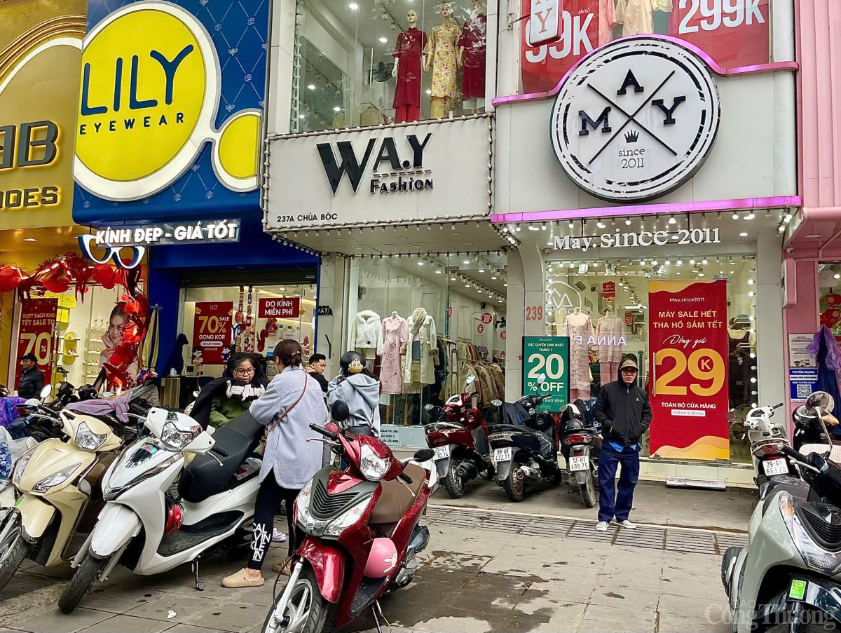 Khung cảnh mua sắm tấp nập tại phố Trương Định (Hai Bà Trưng, Hà Nội) trước thềm Tết Nguyên đán Ất Tỵ 2025. |