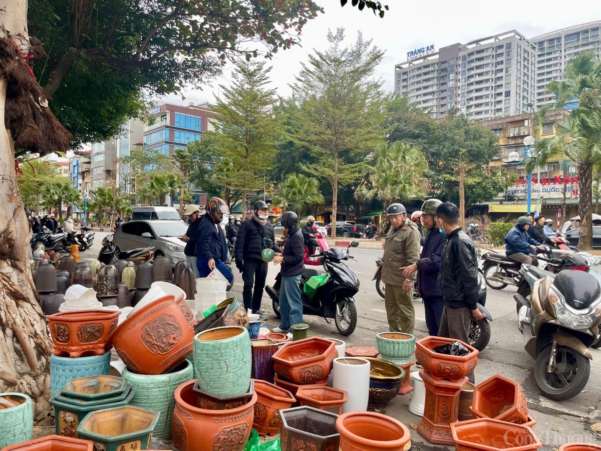 Bên cạnh các loại hoa, cây cảnh được người dân tìm mua về nhà trang trí Tết thì các bình, chậu gốm sứ để trồng, cắm cây hoa cũng là một mặt hàng đắt khách. |