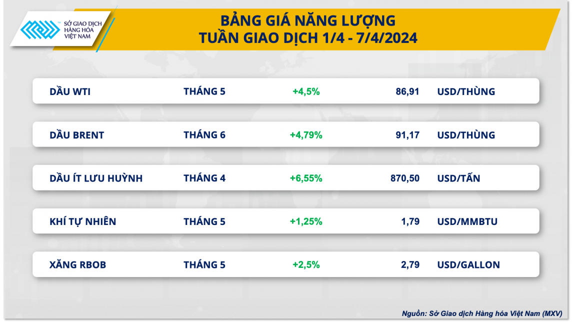 Hỗ trợ chính xuất phát từ yếu tố nguồn cung thu hẹp, trong bối cảnh rủi ro địa chính trị tăng cao; đẩy giá dầu WTI chốt tuần tăng 4,5% lên sát 87 USD/thùng. Dầu Brent tăng 4,79% lên 91,17 USD/thùng.