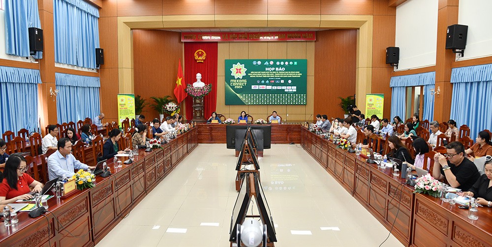| Toàn cảnh buổi họp báo Diễn đàn Mekong Connect năm 2024 - (Ảnh: Báo An Giang). |