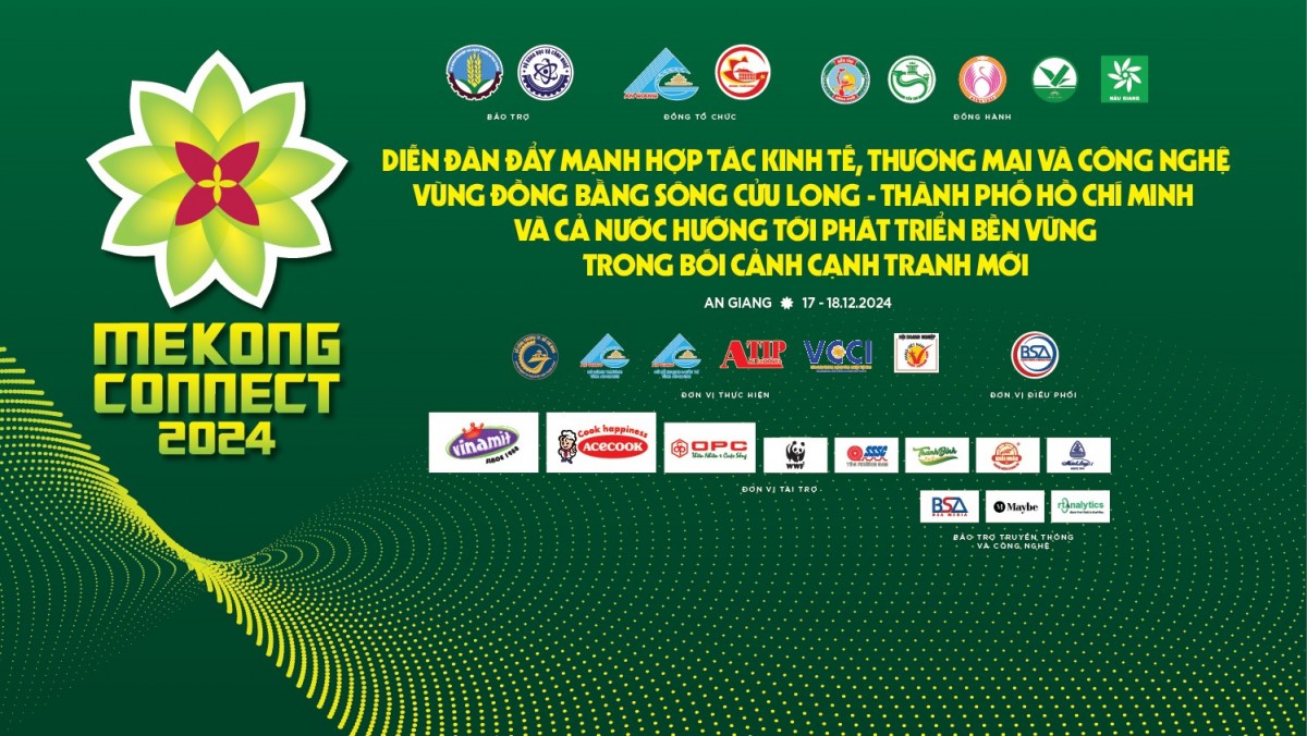 Theo đó, chuỗi sự kiện Diễn đàn Mekong Connect năm 2024 sẽ diễn ra trong 2 ngày 17 và 18/12/2024 tại Đại học An Giang (TP. Long Xuyên, tỉnh An Giang), với chủ đề: “Đẩy mạnh hợp tác kinh tế, thương mại và công nghệ vùng Đồng bằng sông Cửu Long – TP. Hồ Chí Minh và cả nước, hướng tới phát triển bền vững trong bối cảnh cạnh tranh mới”.