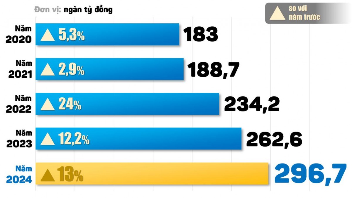 | Đồ họa thể hiện tăng trưởng về tổng mức bán lẻ hàng hóa và doanh thu dịch vụ tiêu dùng của Đồng Nai từ năm 2020-2024. Ảnh: Hải Hà |
