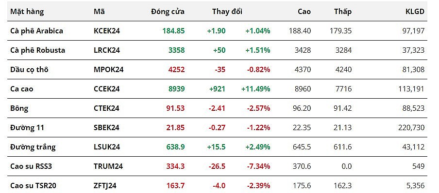 Giá Arabica tăng thêm 1,04% so với mức tham chiếu. Giá Robusta tăng 1,51%, tiến về vùng đỉnh 30 năm. Lo ngại thiếu hụt nguồn cung là chất xúc tác chính thúc đẩy lực tăng giá Robusta trong tuần qua.