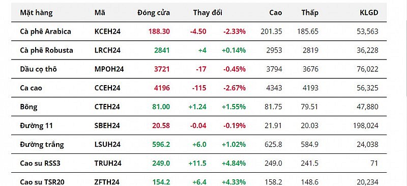 Sự trái chiều cũng diễn ra với hai mặt hàng đường. Đóng cửa tuần, giá đường 11 giảm 0,19% trong khi giá đường trắng tăng 1,02% so với tham chiếu. Sự suy yếu của giá dầu thô làm gia tăng tín hiệu tích cực cho triển vọng nguồn cung đường niên vụ 2023/24 tại Brazil.