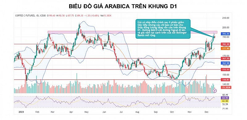 Nhận định: Giá Arabica trong phiên hôm nay có thể tăng những khó có thể vượt khỏi mức 195 cents/pound.