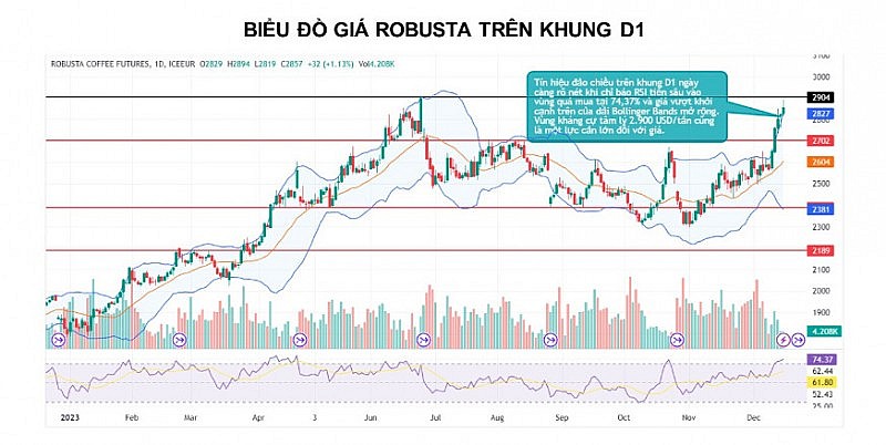Nhận định: Giá Robusta trong phiên hôm nay sẽ có những nhịp điều chỉnh giảm do áp lực kỹ thuật, giá khả năng cao biến động trong khoảng 2.800 – 2.895 USD/tấn.