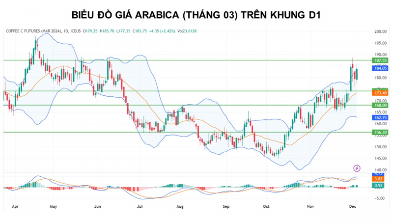 Nhận định: Giá Arabica trong phiên hôm nay có thể sẽ lui về 180 cents/pound trước những tín hiệu tích cực từ nguồn cung, cũng có khả năng giằng co nếu tín hiệu việc làm tại Mỹ tiếp tục tiêu cực.