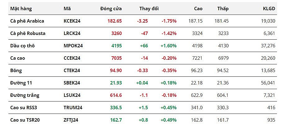 | Giá bông bật tăng trong sắc xanhNguồn cung cải thiện tạo sức ép lên giá hai mặt hàng cà phêGiá cà phê mới nhất ngày 14/3/2024: Thị trường cà phê trong nước tăng mạnh 900 đồng/kg |