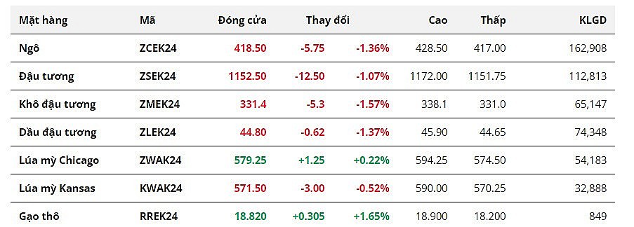 | Lúa mì tăng vọt gần 4%, chấm dứt chuỗi 4 phiên giảm liên tiếpLực bán có thể sẽ chiếm ưu thế với đậu tương phiên hôm nayTriển vọng nguồn cung Nam Mỹ gia tăng gây áp lực lên giá ngô |