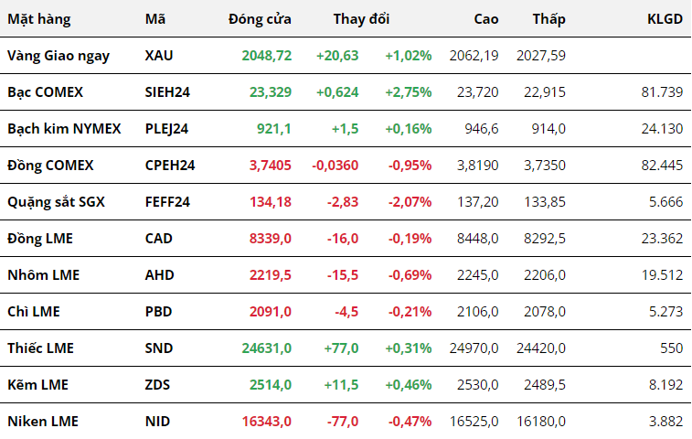 Trong phiên hôm qua, vai trò trú ẩn của kim loại quý đã phát huy tốt trong bối cảnh xung đột leo thang tại Trung Đông. Mỹ và Anh đã tiến hành các cuộc không kích khắp Yemen để trả đũa lực lượng Houthi, một trong những minh chứng kịch tính nhất từ trước đến nay về sự lan rộng của xung đột Israel - Hamas ở Trung Đông kể từ khi nổ ra vào tháng 10/2023. Iran đã cảnh báo rằng nó sẽ gây ra "sự bất an và bất ổn" trong khu vực.