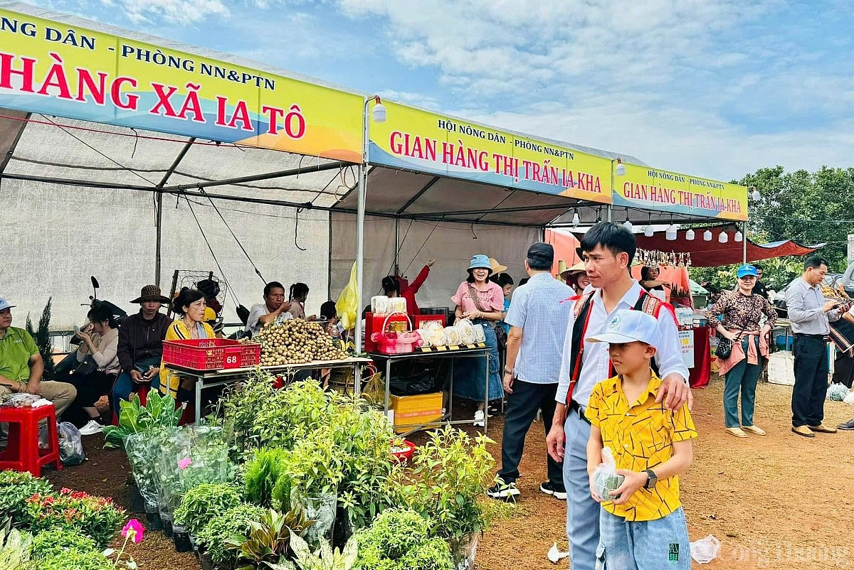 Các gian hàng do Hội nông dân huyện Ia Grai phối hợp với Phòng nông nghiệp và Phát triển nông thôn tổ chức. Với sự bày trí đơn giản, cộng với sự tư vấn nhiệt tình của người dân địa phương đã mang đến cho du khách sự trải nghiệm độc đáo, mở hướng cho hành trình phát triển du lịch từ sản vật đặc trưng của mảnh đất biên giới.