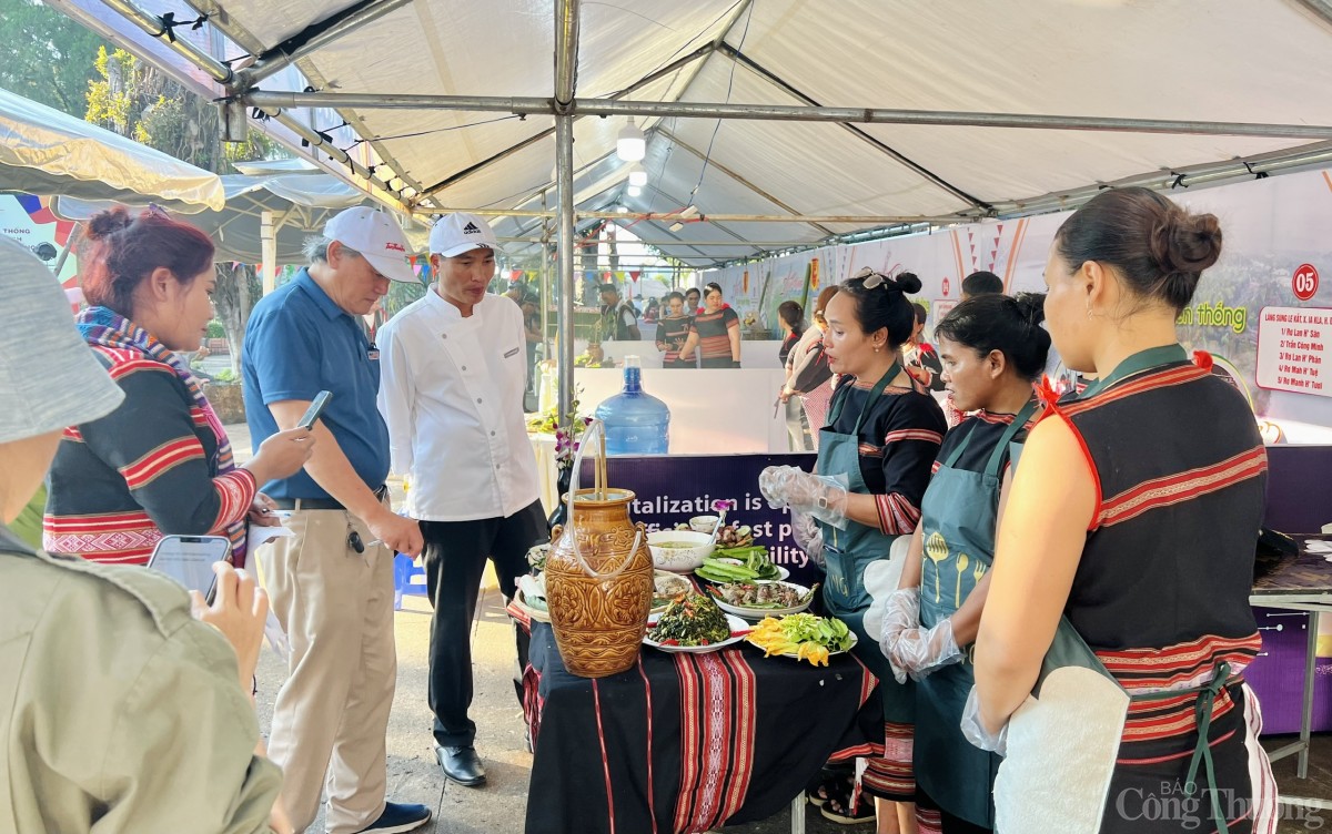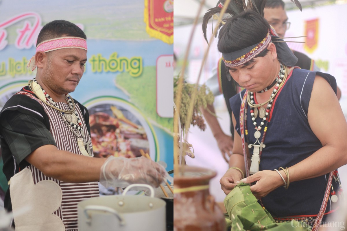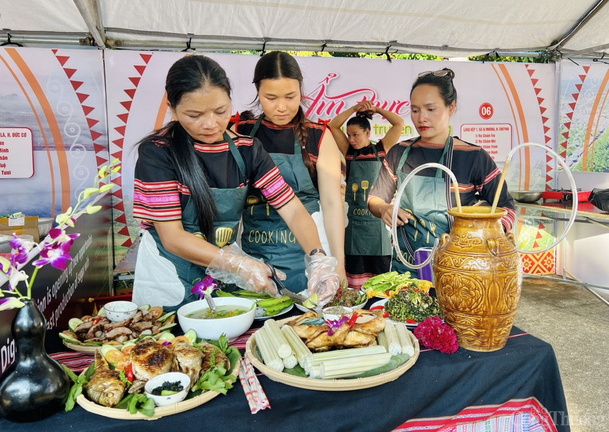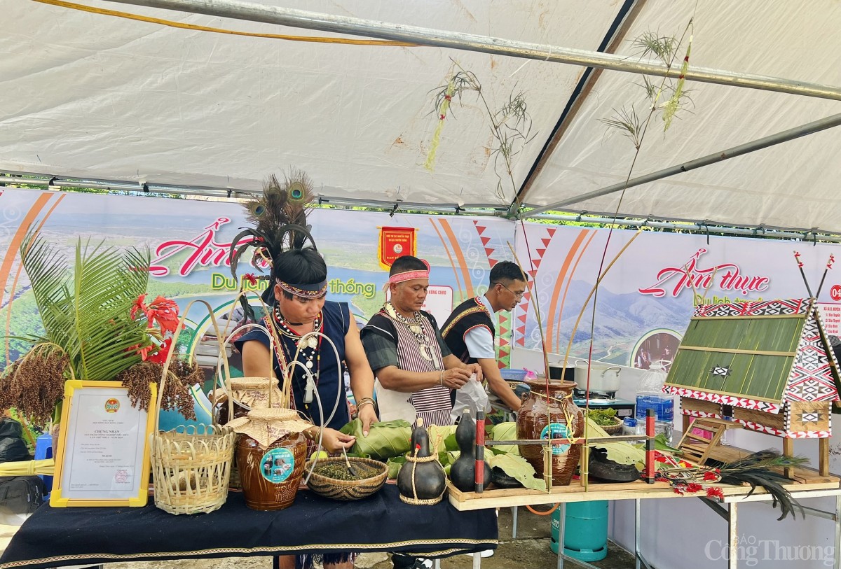 Từ các nguyên liệu đặc trưng của núi rừng như gà, cá sông Pô Cô, rau rừng, măng, quả ươi,... qua bàn tay khéo léo, công phu của các nghệ nhân, những món ăn được hoàn thiện và trưng bày vô cùng đẹp mắt.
