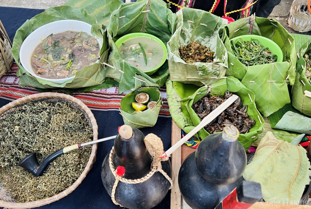 | Một số món ăn địa phương như: dế rang, rượu ghè bo bo, rau dớn,... của đội thi tới từ huyện Kông Chro |