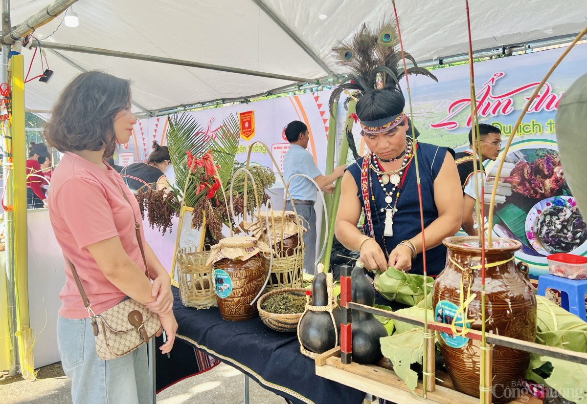 | Đội thi của huyện Kông Chro gây ấn tượng mạnh bởi gian ẩm thực được các nghệ nhân cất công bày trí vô cùng ấn tượng và đẹp mắt |
