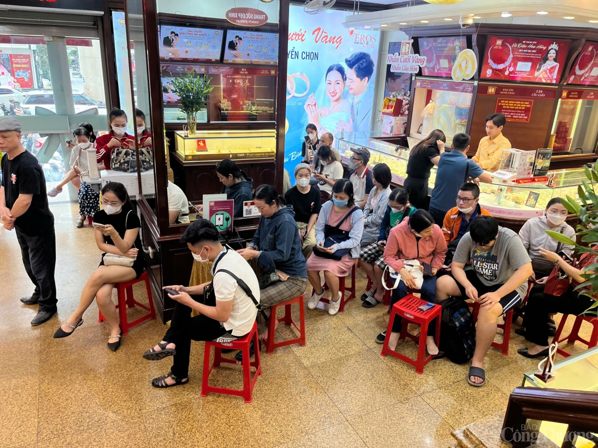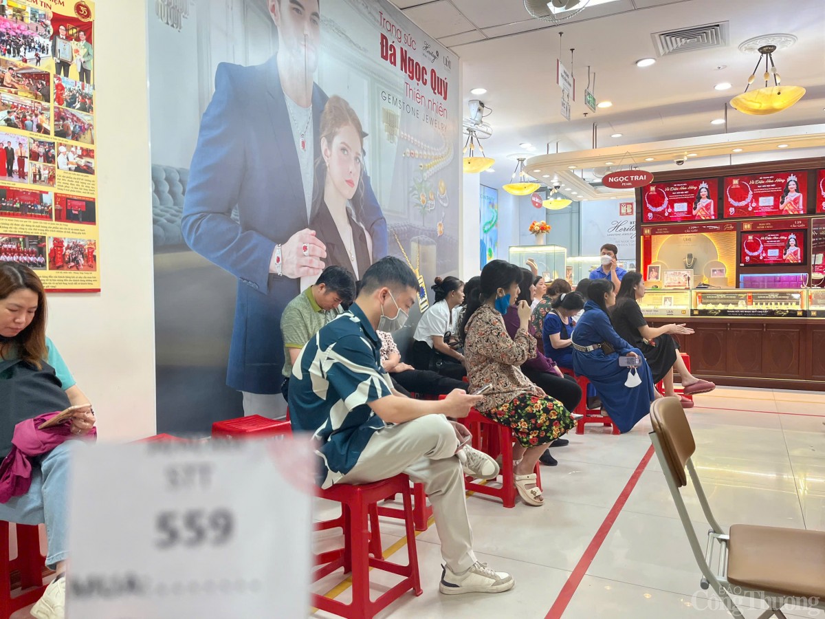 | Cửa hàng vàng nhộn nhịp khách chờ để được mua vàng. |