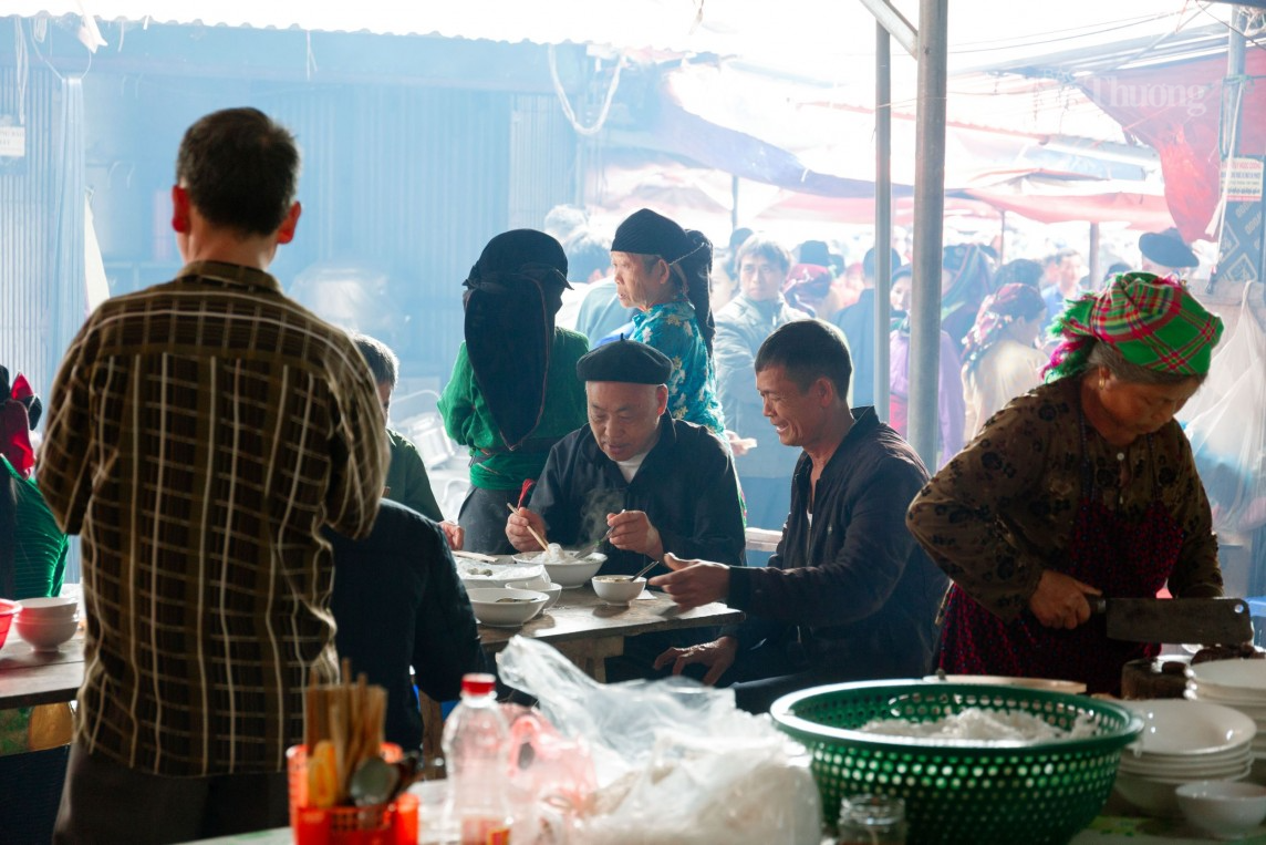| Phiên chợ đã thành nét đẹp sinh hoạt văn hóa của các dân tộc vùng cao. Nhiều người dành cả ngày ở đây để mua sắm, vui chơi, ăn uống. |