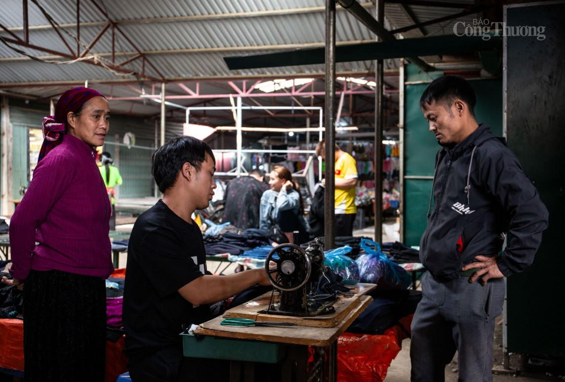 | Cũng có đôi khi người tới chợ để sửa lại quần áo, hoặc trao đổi các loại thổ cẩm. |