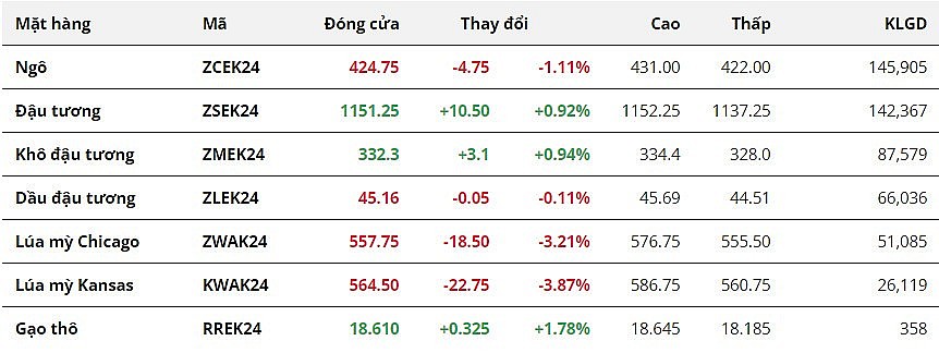 Trong khi đó, thị trường đậu tương nhận được lực mua hỗ trợ kỹ thuật và kết phiên với mức tăng nhẹ, gần 1%.
