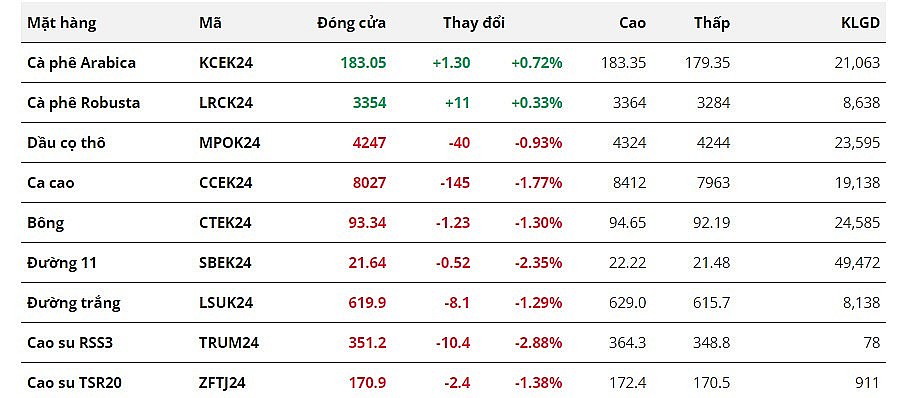 Giá cà phê Arabica đảo chiều hồi phục 0,72%, lấy lại những gì đã mất trong phiên hôm trước và giá Robusta tăng thêm 0,33% so với mốc tham chiếu. Tỷ giá USD/BRL suy yếu đã lấn át đà hồi phục của dữ liệu tồn kho trên Sở ICE-US, từ đó hỗ trợ của giá Arabica tăng.