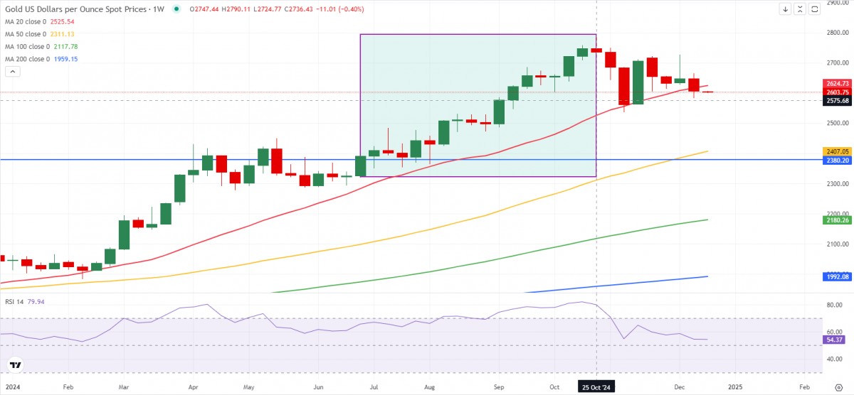 Lợi suất trái phiếu kho bạc Mỹ tăng cao hơn và khiến XAU/USD giảm sâu hơn khi bước vào kỳ nghỉ Giáng sinh. Trong khi đó, Chủ tịch Fed Jerome Powell lưu ý rằng họ có thể thận trọng hơn trong việc giảm lãi suất trong thời gian tới.