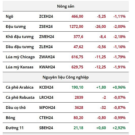 Thị trường nông sản chìm trong sắc đỏ trong phiên giao dịch đầu tiên của năm mới. Lực bán hiện đang áp đảo đối với lúa mì (ZWAH24 -1,79%) trước triển vọng xuất khẩu của Nga và Liên minh châu u (EU). Cụ thể, lúa mì của Nga hiện đang bắt đầu năm mới với lợi thế về giá rõ ràng so với lúa mì thế giới. Ngoài ra tại Đức, thị trường hiện đang không quá lo ngại về mưa lớn tại quốc gia này, thậm chí lượng mưa dồi dào còn khiến độ ẩm của đất được cải thiện sau mùa hè khô hạn.