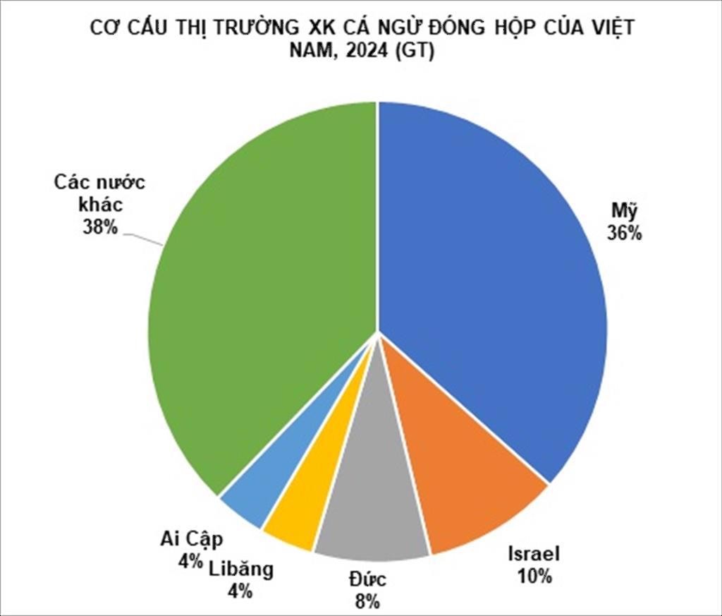 Theo số liệu thống kê của Hải quan Việt Nam, thị trường xuất khẩu cá ngừ đóng hộp củan nước ta ngày càng mở rộng. Chỉ tính riêng năm 2024, các sản phẩm này đã xuất được sang hơn 80 nước trên thế giới. Trong đó, Mỹ, Israel, Đức, Libăng và Ai Cập là 5 thị trường nhập khẩu nhiều nhất cá ngừ đóng hộp của Việt Nam, chiếm trên 62% tổng kim ngạch xuất khẩu nhóm sản phẩm này.